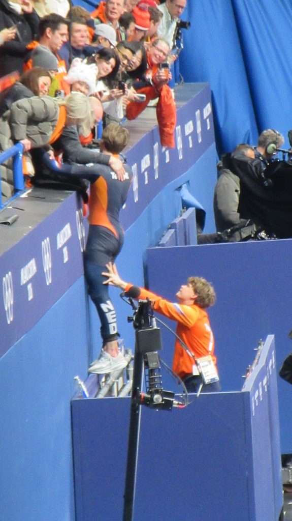 En bonus : Melle van ‘t Wout donne un coup de main à son petit frère, Jens, pour que ce dernier, champion olympique depuis environ 3 minutes, aille embrasser leurs parents. J’ai presque pas pleuré. (Photo disponible aussi sur Wikimédia Commons.)